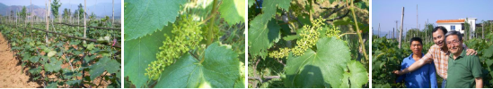 中国广西葡萄园-施喷富华农后,有效活化果肉细胞分裂,增进葡萄肥大均匀,肉粒饱满结实,甜度高.叶绿树壮,根部发展艮好,大大增强抗涝抗病虫害能力.对比区内的葡萄个粒大小不一,挂果率低,出现黄叶清况.富华农对作物的修复能力惊人,不但挽救园内一株已坏死15年没结果的葡萄树,更恢复其生长再结果子,叶绿树壮,葡萄树再现生机,这展示富华农用科技解决种植难题,是品质的保证.日本农业专家井上伦平先生指导园主使用富华农的注意事项及分享使用富华农后的丰收成果.