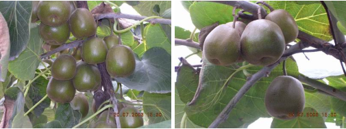 中国四川都江堰县猕猴桃种植基地- 施喷富华农后,有效促进猕猴桃树内源生长素产生,树壮茂盛,叶子颜色深绿,座果率高,有效增进猕猴桃肥大均匀,果实密度高及提高糖度,大大提高一级品的比例.同时促进果胶质产生,果胶质的粘胶膜是植物的防护衣,免受病毒感染和昆虫袭击,防病虫害能力强.