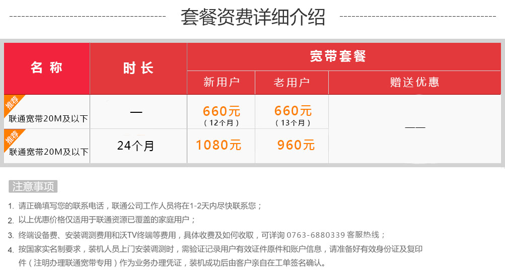 名称:联通宽带20M及以下