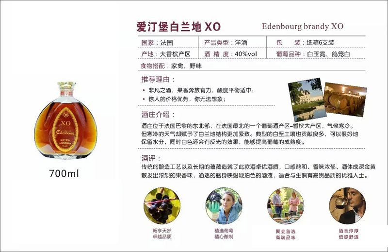 爱汀堡白兰地XO 700ml