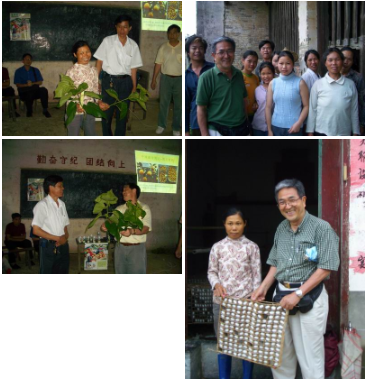 桑叶讲座,一位种植桑叶的农民分享使用富华农后产量增加,大大提高收入.农业专家井上伦平先生与她一起分享使用富华农的成果.