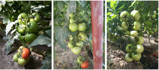 使用汉诺系列肥料(固肥、液肥、富华农叶面肥)后, 有机西红柿果形大小均匀、饱满, 结果率高