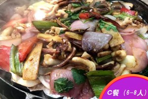 以下套餐不包括餐位,饭和小食费。B餐(5-6人)178元/ 原价238元。铁板鱿鱼须凉瓜炒牛肉绿水菜炒花腩椒盐沙碌仔茄瓜炆豆角蒜茸时蔬