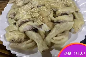 以下套餐不包括餐位,饭和小食费。D餐(10人)328元/原价448元。白切鸡项豉汁大蒜炆鹅铁板京葱啫猪脷椒盐河虾仔脆笋炆花腩凉瓜炒蛋